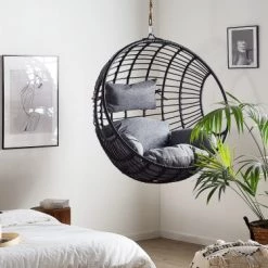 Meilleure vente ⌛ Beliani Fauteuils Suspendus Fauteuil Suspendu En Rotin Noir 💯