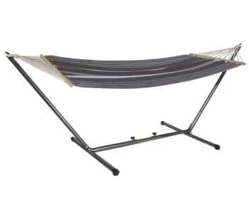 matière : Hamac : 35 % polyester, 65 % coton et Support: Acier