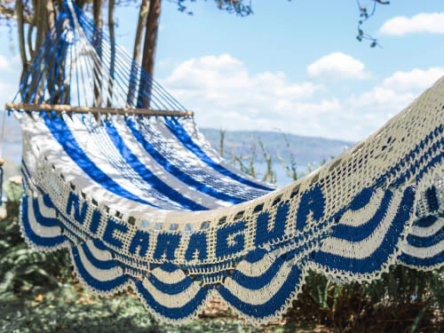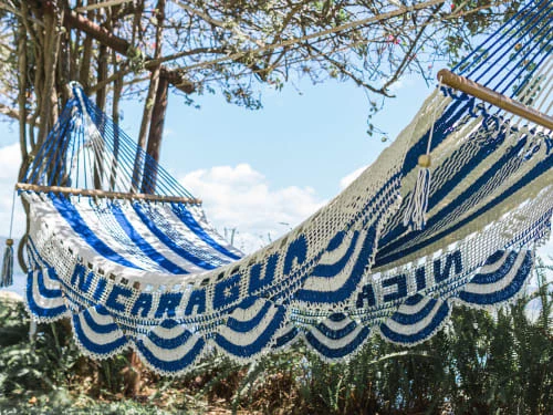 Sortie 🤩 Hamac Del Sol Hamacs Hamac à Barre Nicaragua L Blanc Et Bleu ✔️