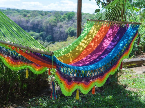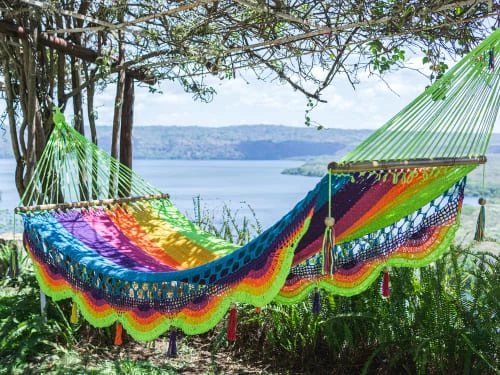 Ce Hamac du Nicaragua est tissé avec passion par des mains d’artisans pour créer des pièces d’excellente qualité, dont la mission est de rendre votre repos le plus agréable possible.