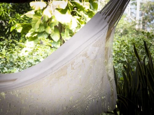Cet Hamac de luxe est conçu pour l’intérieur comme pour l’extérieur. Réalisé en fil extra fin Miratex , sa couleur perdure dans le temps même sous l’effet du soleil et du lavage. Son tissage dense est très serré pour un confort plus ferme.
