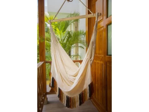Bercé par un doux balancement, c’est un réel plaisir de se reposer, de contempler ou de lire à l’intérieur det objet Colombien. Pensez de manière créative, grâce à ce Hamac chaise, vous pourrez créer des espaces uniques et originaux qui éveilleront les émotions. Mélangez textures et couleurs grâce à des coussins assortis, pour créer une sensation de repos et de paix dans votre maison.
