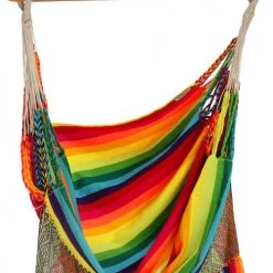 Avec ce Hamac chaise Malambo, ce sont les caraïbes qui s’invitent chez vous en vous offrant un sentiment de page à la maison. Ses couleurs chaleureuses et vives se combineront très bien avec un style contemporain. N’oubliez pas que les meubles anciens ou ceux qui un aspect vieilli, sont le choix parfait pour l’espace dans le style des Caraïbes.