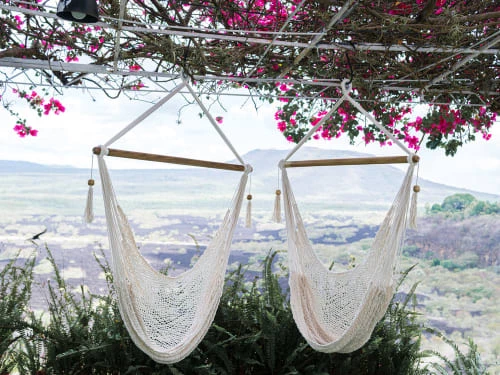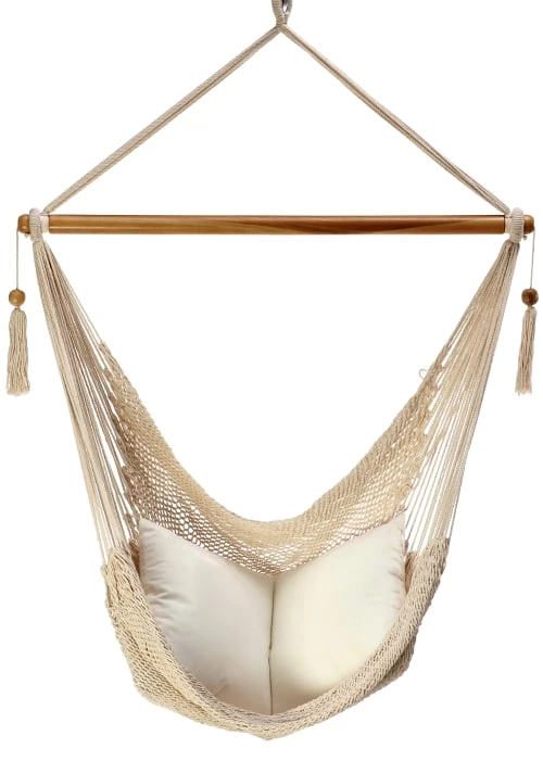 En comparaison avec un Hamac, le Hamac chaise est soumis à une plus forte pression, puisque le poids du corps se concentre uniquement sur l’assise. Il est donc essentiel qu’il soit fabriqué manuellement en Amérique du Sud, pour bénéficier d’un savoir faire inégalable et inégalé.