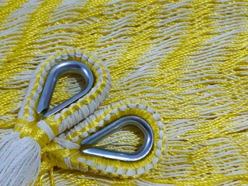 100% Nylon (La matière des filets de pêche) : La seule matière permettant de laisser votre Hamac en extérieur, été comme hiver, sans avoir à le rentrer! le Hamac Izamal peut supporter les climats extrêmes et ne craint ni le gel, ni la pluie, ni le soleil. Cependant, pour plus de soin et de durabilité, il est recommandé de le conserver à l’abri après utilisation. Son fil épais et ses bras de 156 cordes sont les ingrédients d’un Hamac qui durera des années.