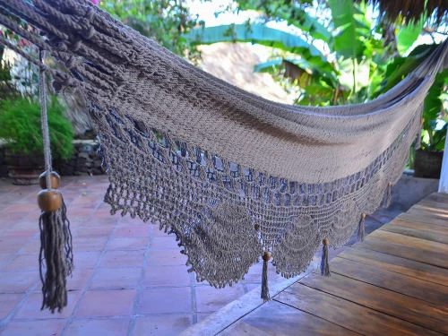CotĂ© design, le Hamac traditionnel du Nicaragua est muni dâune jolie frange lui donnant un trĂšs joli look. Ses cordes extra Ă©paisses seront les ingrĂ©dients dâun Hamac qui durera des annĂ©es. Une trĂšs grande quantitĂ© de coton est nĂ©cessaire Ă sa fabrication. Au final, câest une structure immensĂ©ment solide fait de cordes de grand diamĂštre pour un confort sans Ă©gal.