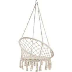 Promo â€ïž Outsunny Fauteuils Suspendus Chaise Suspendue MacramĂ© Coton Polyester Beige đ
