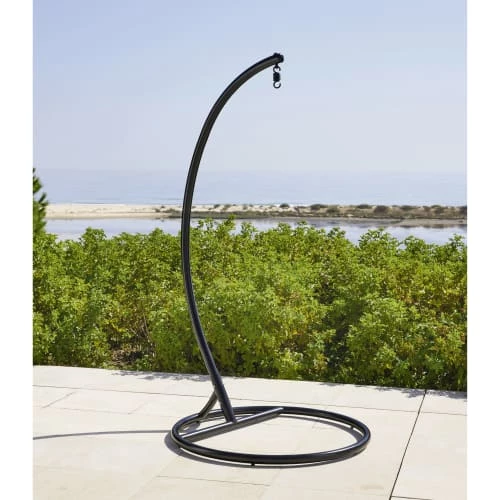 Suspendez votre petit cocon à l’aide du pied pour fauteuil suspendu en métal noir CEBU ! Sur votre terrasse ou près d’une piscine, il insufflera une atmosphère aérienne pour cocooner en solitaire. Le principal atout de ce pied pour fauteuil suspendu de jardin ? Une structure à la fois délicate et robuste en métal traité époxy, indispensable pour résister à la rouille en cas d’intempéries.