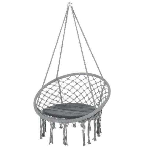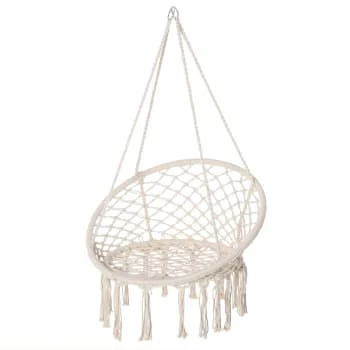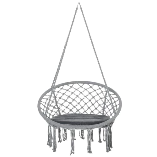 – Fauteuil suspendu en macramé coton polyester avec franges style bohème chic qui sublimera votre espace
