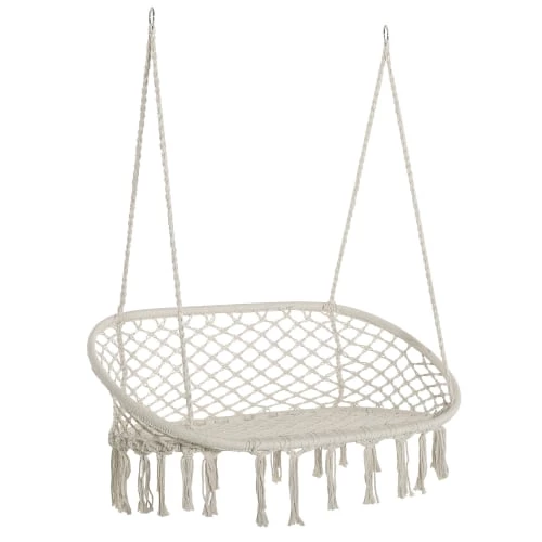 – Banc suspendu en macramé coton polyester avec franges style bohème chic qui sublimera votre espace