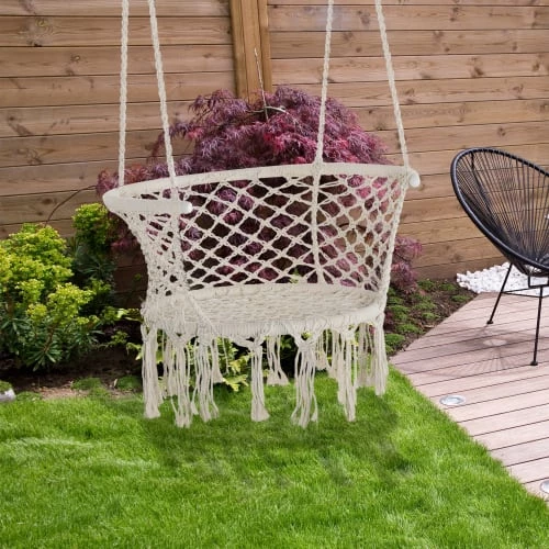 – Fauteuil suspendu en macramé coton polyester avec franges style bohème chic qui sublimera votre espace