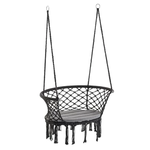 – Fauteuil suspendu en macramé coton polyester avec franges style bohème chic qui sublimera votre espace