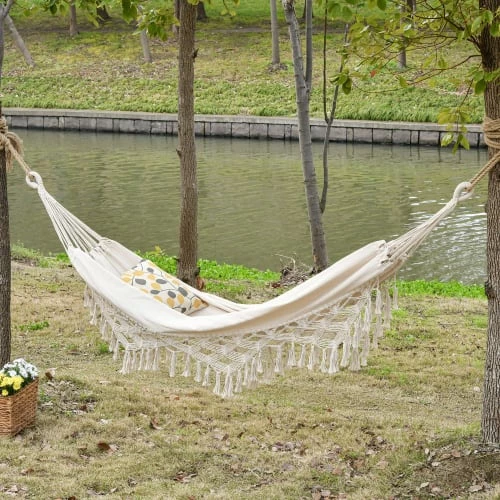 – Toile style bohème chic beige avec filet franges tombants : originalité et élégance