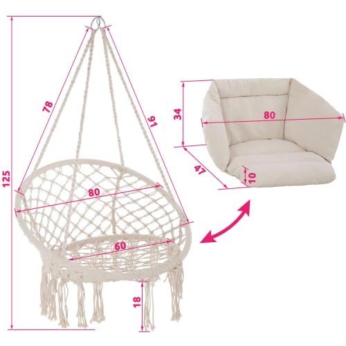 Tout neuf 🎁 Tectake Fauteuils Suspendus Fauteuil Suspendu JANE Beige ⌛